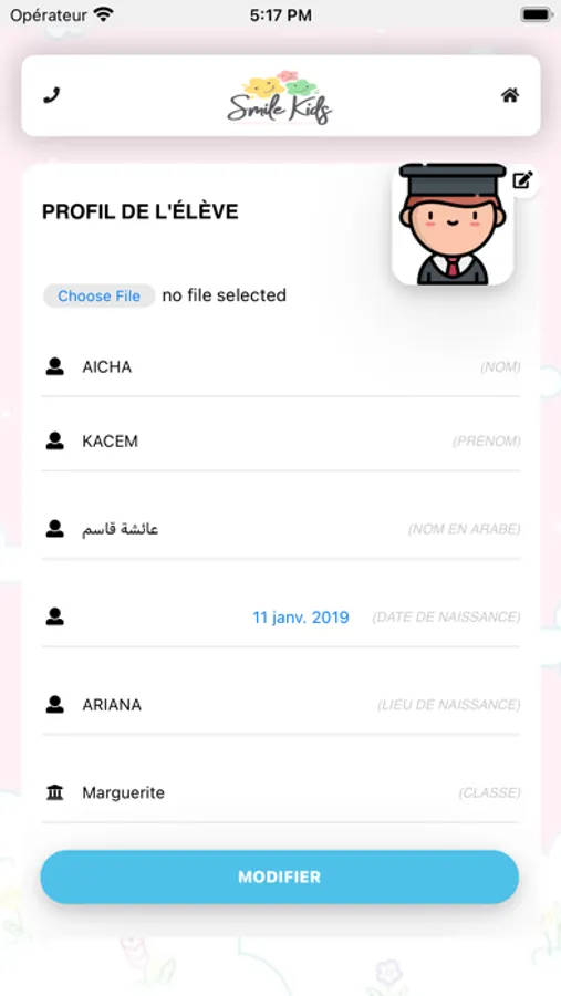 L'application Smile Kids permet au parent d'être à côté de son enfant: suivre les activités pédagogiques, recevoir des conseils du cadre de l'école, être à jour pour les évènements culturels et sportifs. Contacter l'administration de l'école, recevoir les bulletins des notes, ...Smile Kids c'est être informé là où vous êtes... Cher parent Smile Kids télécharger Smile Kids Mobile et entrer votre identifiant et mot de passe disponible par sms ou à l'administration de l'école.
