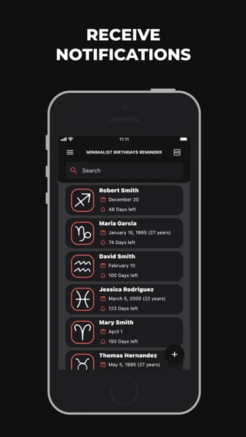 - Find Birthdays by name: Quickly locate specific reminders using our name search feature.