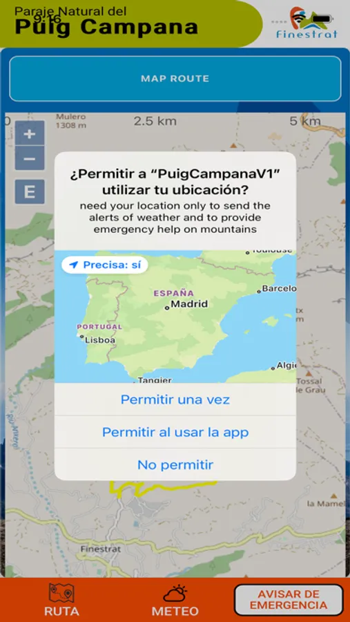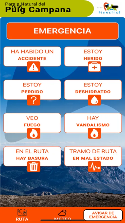 Aplicación SOS Puig Campana. Permite enviar localización en caso de emergencia en el entorno del Puig Campana a las autoridades de Finestrat.
