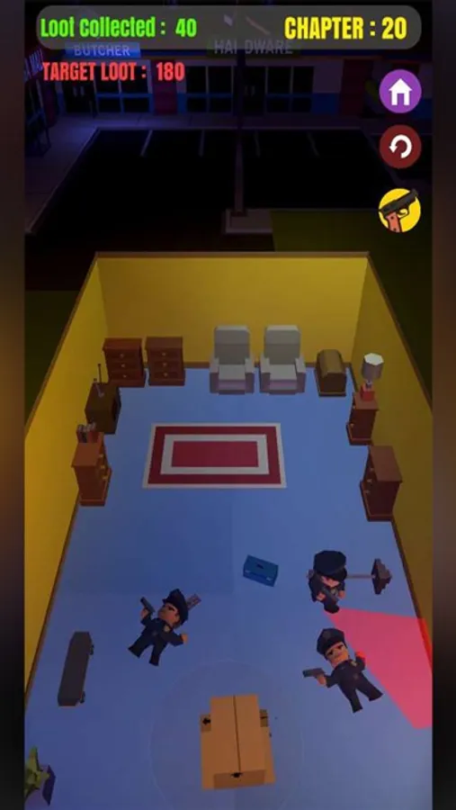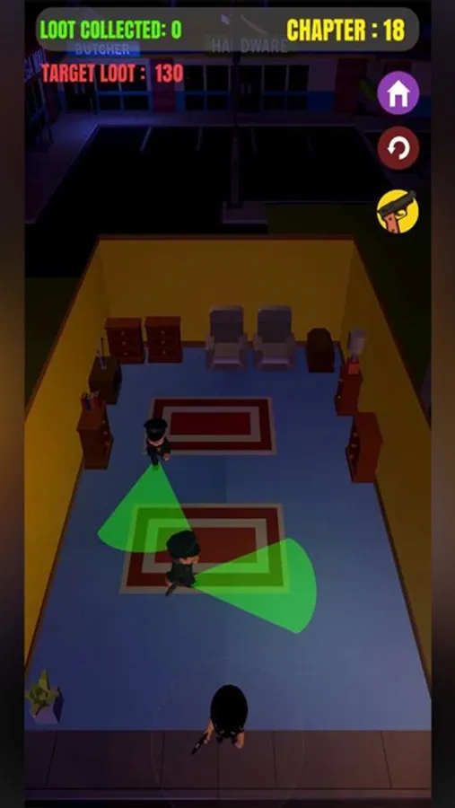 It’s time to show your skills on a sneaking mission. Load your gun, hide under a basket, look out for torchlight and plan your move. Make the most out of your heist by collecting loot material. Escape and clear each level with ease. Become a stealthy looter master and collect everything from jewels, frames, lamps, and much more.