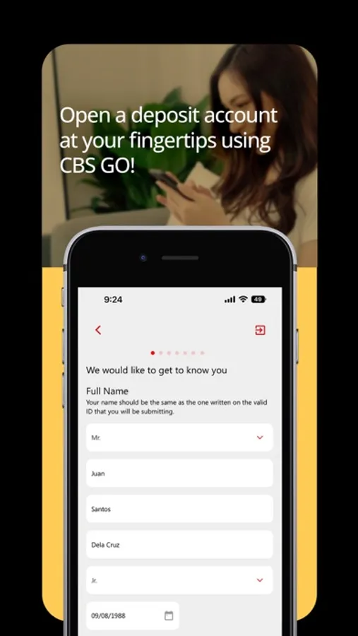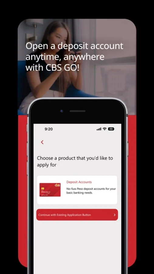 Open a CBS Savings Account anytime and anywhere you may be with CBS GO Mobile App.