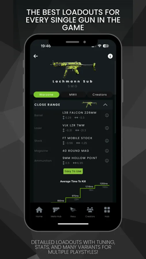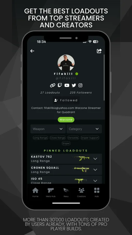 Join a thriving community of players and renowned creators by creating your own profile. Manage your loadouts with state-of-the-art tools and link your profiles to your social media accounts to grow your following. The app also allows you to share your loadouts across social platforms with pre-generated loadout images, making it easier than ever to showcase your setups.