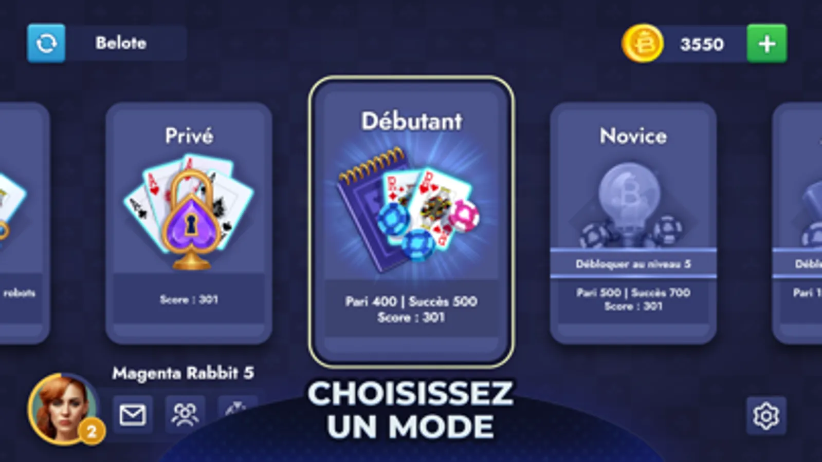 The Belote can be played in multiple variations and can involve betting, which adds an extra layer of excitement. In addition to playing the Belote or Belote coinche, there are tournaments and special events that you can participate in. You can also play mini games or coinche to have more fun. Playing always at richer tables. The more you bet, the more you win! Belote is great for everyone from beginner to experienced players and is sure to provide hours of entertainment. You can even play in private rooms with your friends and family by sharing the room code.