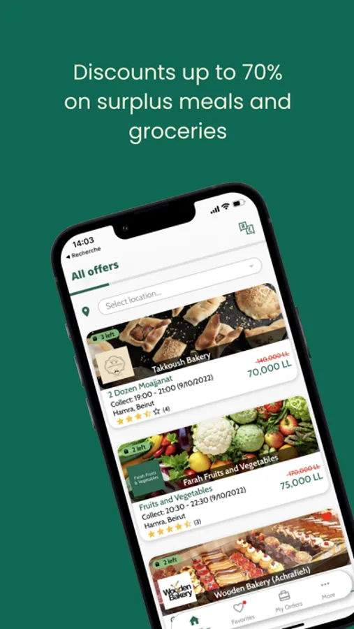 Save up to 70% by buying surplus items from more than 50 bakeries, restaurants and supermarkets in Beirut.