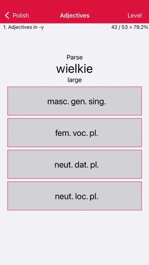 • Adjectives: Tests your ability to recognise and decline Polish adjectives.