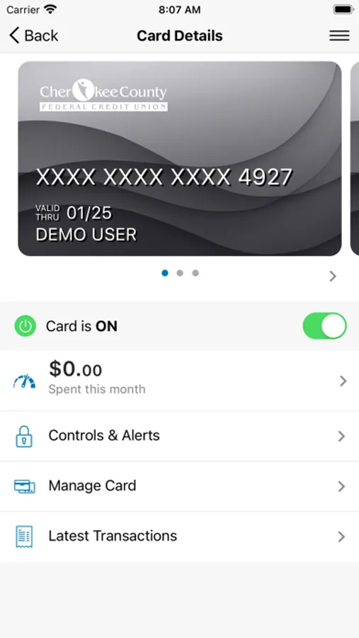 Cherokee County FCU CardNav puts you in control of your debit card. You can turn your card on or off, control where it can be used, receive alerts, set spending limits, and manage transactions. Download our app today!
