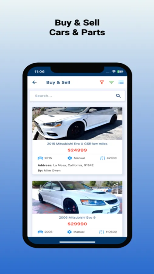 In addition to submitting requests for auto services, our app also allows you to buy and sell cars and parts. You can list your car or parts for sale or browse listings from other users.