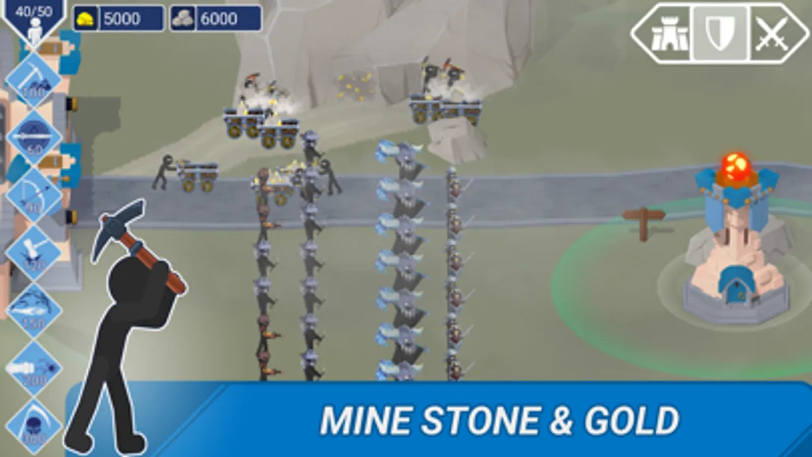 Collect gold with miners and train powerful shielders, archers, and other warriors to expand your stickman army.