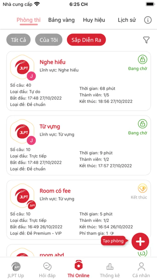 Tự tạo phòng, chọn đề ở các cấp độ khác nhau, thời gian thi khác nhau
