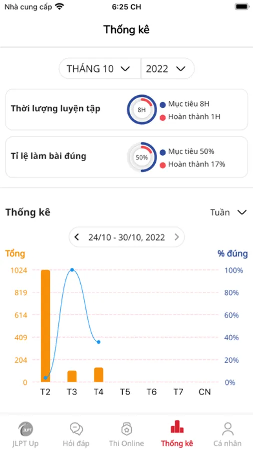 Dễ dàng xem lại và đánh giá sự tiến bộ qua thống kê kết quả