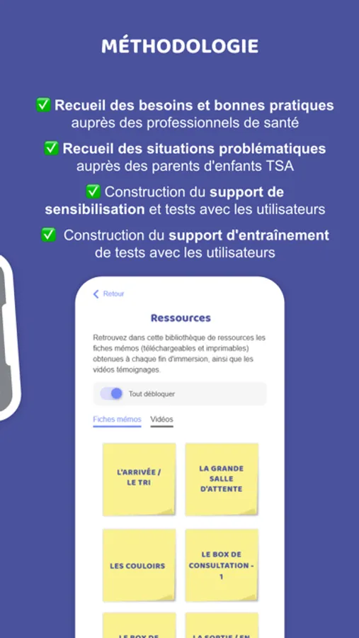 EMOCARE est un support digital basé sur les recommandations de bonnes pratiques professionnelles en matière de TSA comprenant un support de sensibilisation à destination des professionnels de santé à la prise en compte des particularités des enfants porteurs de TSA, lors d’un parcours de soins aux urgences. Ce contenu pédagogique sera open-source et accessible à tout professionnel de santé, concernant tout type de soins.