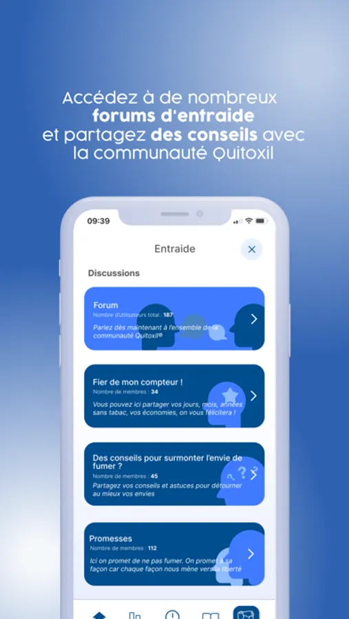Vous pourrez bientôt échanger avec des membres de la communauté ainsi qu’avec des anciens fumeurs certifiés en tabacologie en cas de besoin.