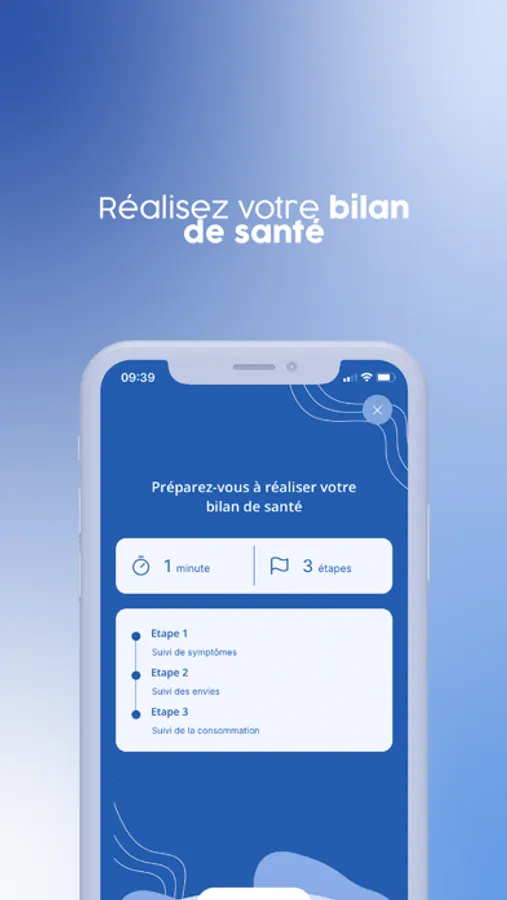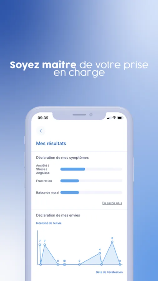 Remplissez au travers d’un court questionnaire votre bilan de santé (symptômes, envies, consommation) de façon hebdomadaire et visualisez graphiquement vos progrès au cours du temps.