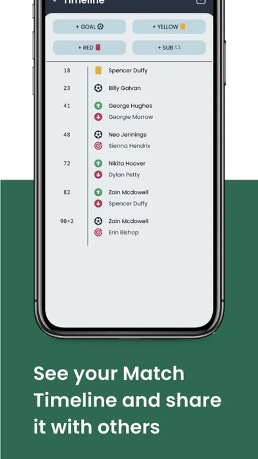 Are you fed up with writing all the match events into a notes app on your phone? Us too! With the timeline view, you can see key match moments and the minute they happened. Perfect for uploading to FA Full-Time after the game.