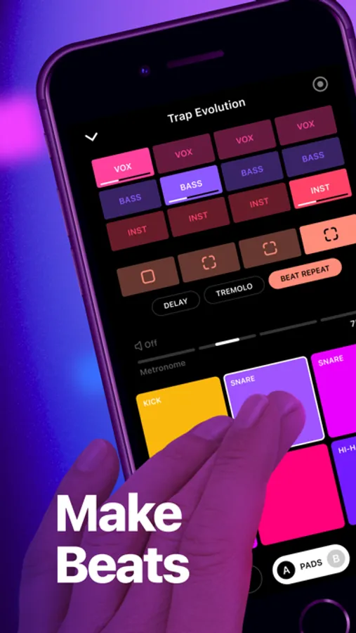 Create epic melodies with keys, combine them with sound loops. Use pads to practice your finger drumming skills. Share your own music anywhere you like.