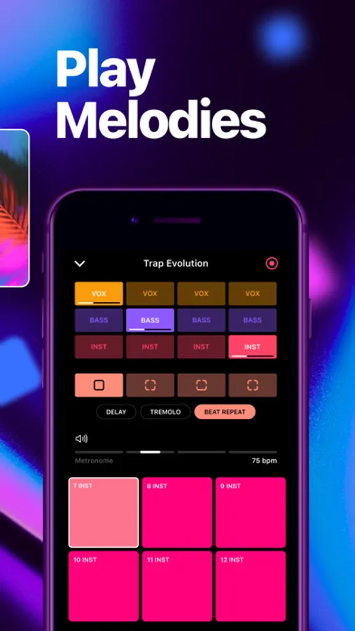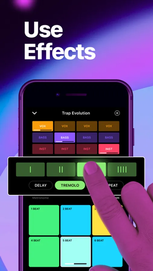 Mix vocal, bass & other instruments with drums. Apply professional effects to make sound more unique. Use loops like a DJ to make your own mix.