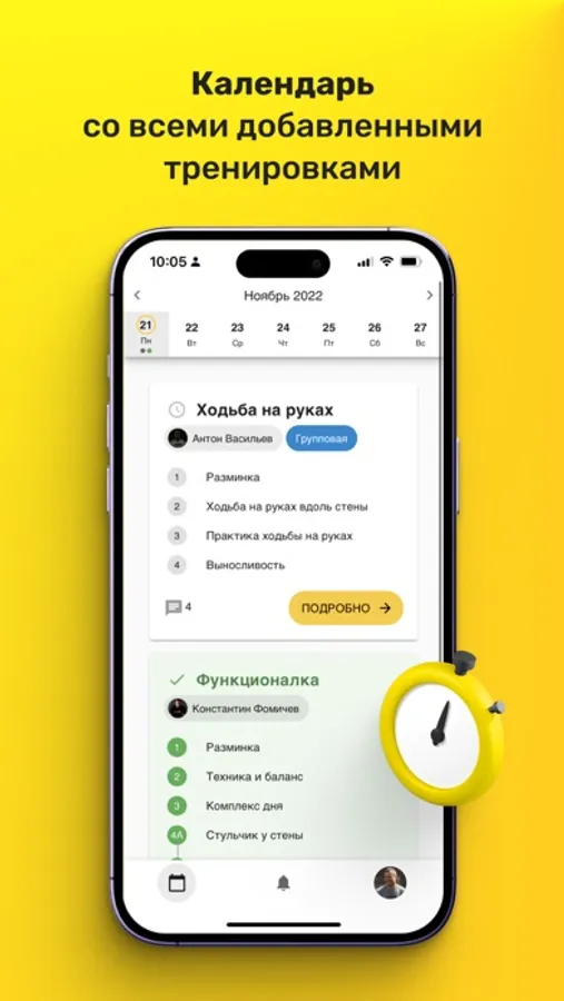 После приглашения от своего тренера вы получите доступ к опубликованной им тренировочной программе в удобном виде.
