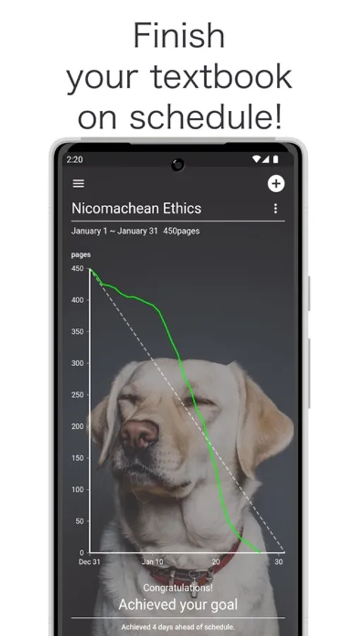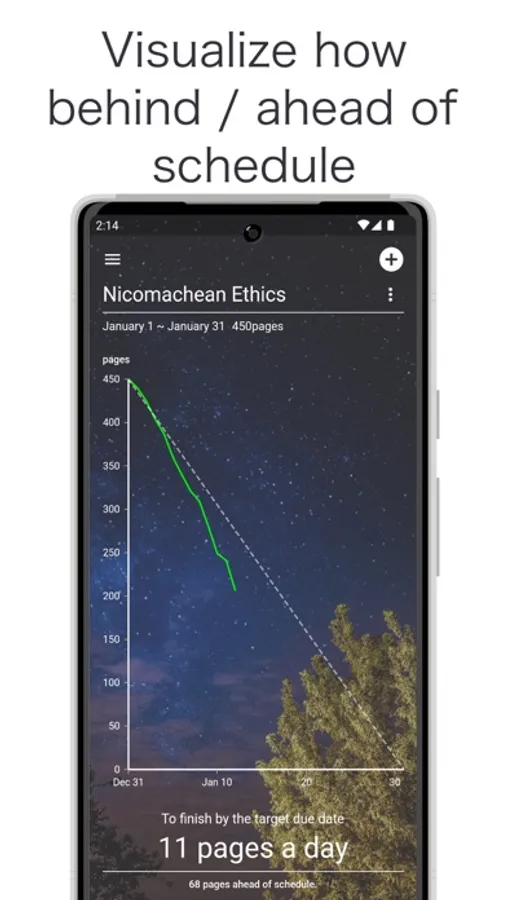 Setting the due date, then vulpe automatically calculates "how many pages you need to proceed on that day to finish by the target date". What you have to do is just following the number of pages displayed.