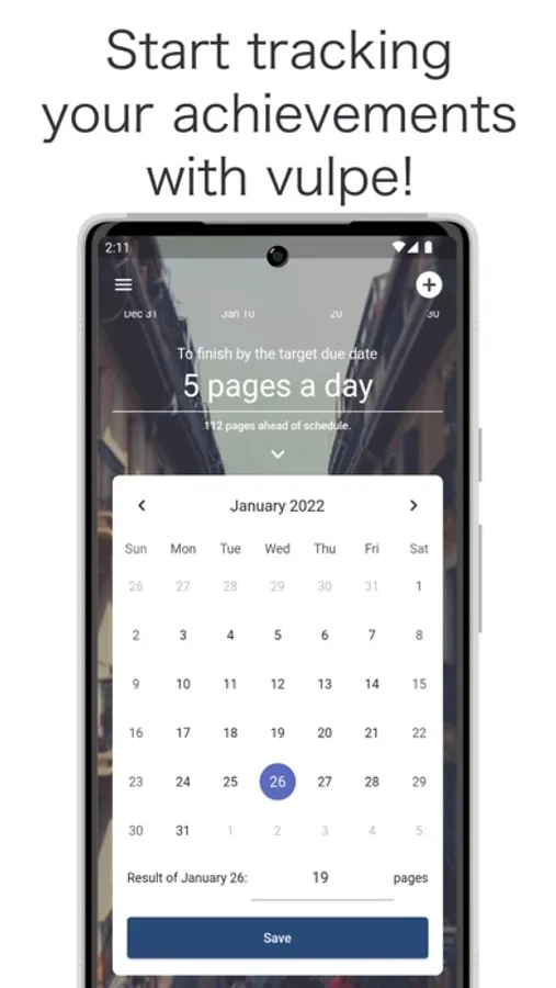 2. Record daily progress as follow the number of pages automatically calculated by vulpe.