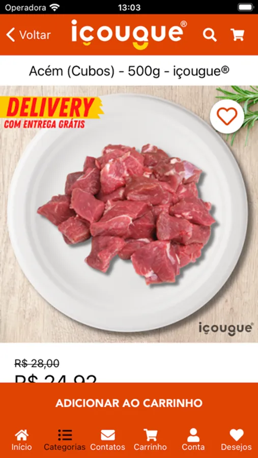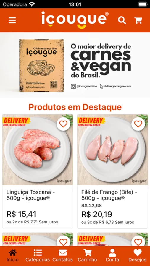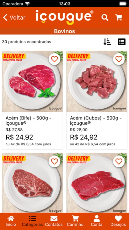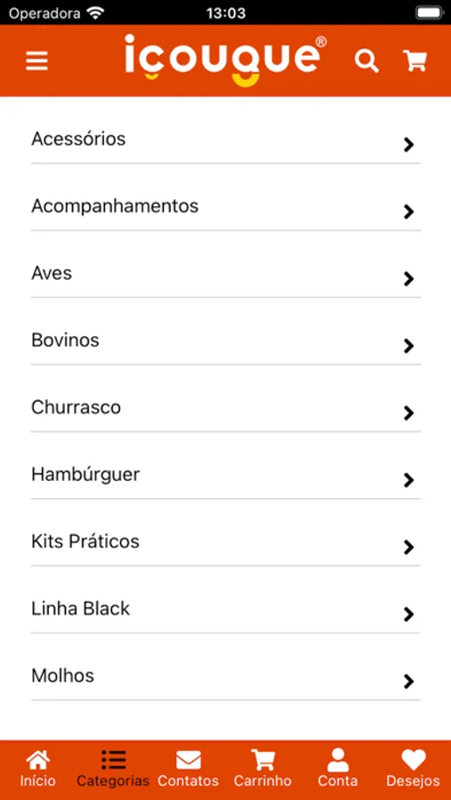 Todos os cortes de Bovinos, Suínos, Aves, Peixes, Cordeiro, Churrasco, Vegano, Cortes especiais, além de Molhos, Temperos e Acompanhamentos.