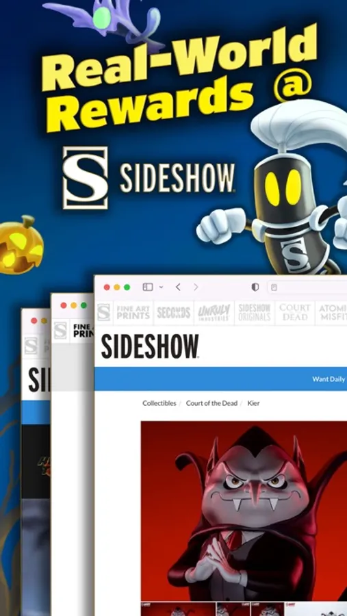 Succeeding through nine challenging levels will score you real world Rewards to redeem at everyone's favorite proprietor of geeky collectibles, Sideshow. And if you're brave enough, you can fight against endless hoards of phantoms in freeplay mode, trying to achieve the highest score on an old-school three character scoreboard.