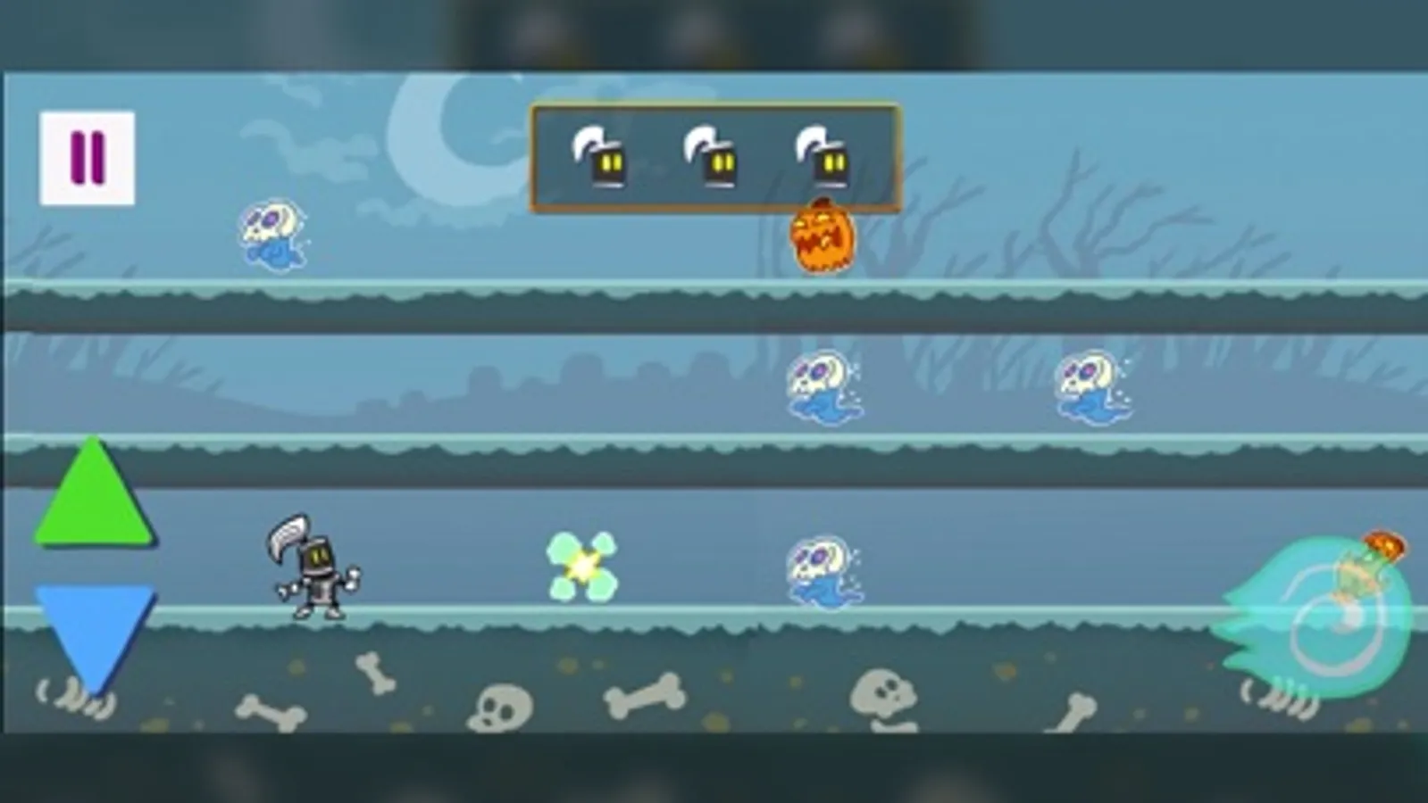 Jump, dodge, and attack oncoming ghosts in this engaging mobile arcade game! Charming hand-drawn animation combines with responsive gameplay and a Spooktacular theme to make any playthrough as cool as ghouls.