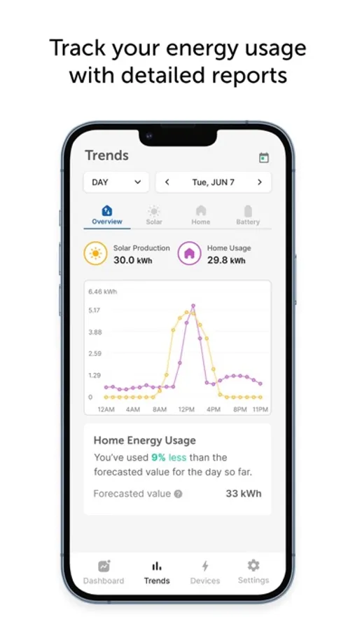 - Get detailed reports how you want: break down where your energy is coming from and where it’s going. See energy insights based on historical usage.