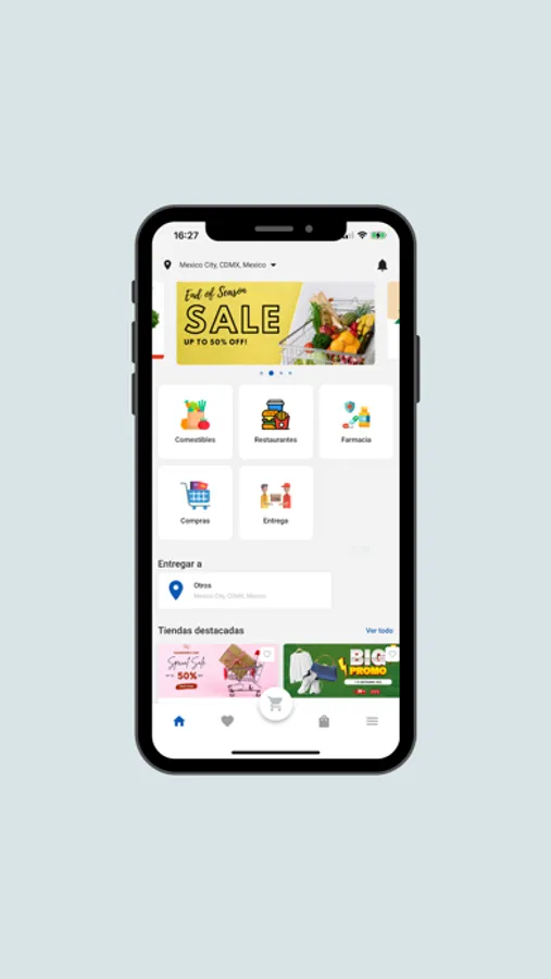 Seleccione su ubicación y verá tiendas y restaurantes disponibles en su área para realizar su pedido, un tiempo de entrega estimado, precios totales e impuestos. Pague de forma segura con su billetera, tarjeta de crédito o pago en la entrega. Rastree su pedido en tiempo real a medida que se presenta.
