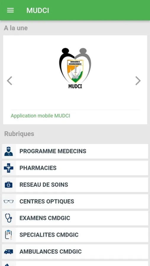 Application Mobile destinée aux Mutualistes de la Douane. Cette application permet de mettre à disposition du Mutualiste, le Réseau de Soins, des Pharmacies et des Centres Optiques agréées