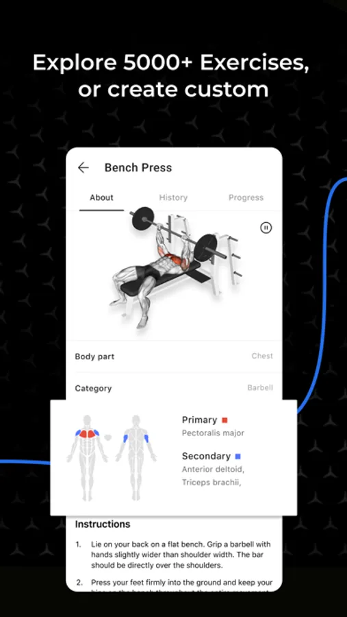 With Lyfta, you can plan and explore thousands of workouts using our routine planner. We offer a wide range of routines, including full-body split, 3-day split, upper-lower bodybuilding routines, 5x5 workouts, push-pull legs, and even progressive barbell routines like Starting Strength or StrongLifts 5x5.