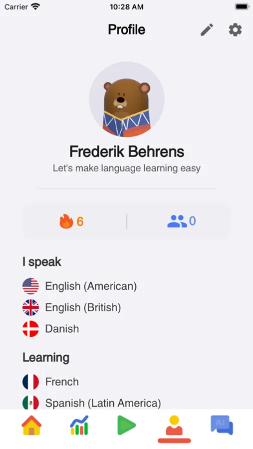 Now everyone can chat in any language, whenever they want and as much as they want. The Artificial Intelligence will keep you engaged by not only answering your messages, but by asking you questions. Don't know what to reply? No Problem! Wordoss lets you translate directly in the chat.