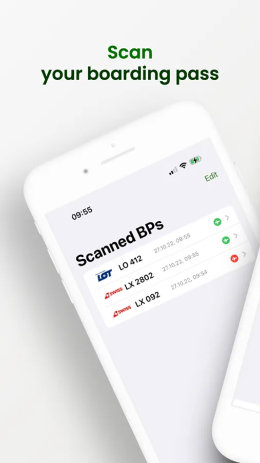 The scanned boarding passes are saved (no personal data) and can be exported.