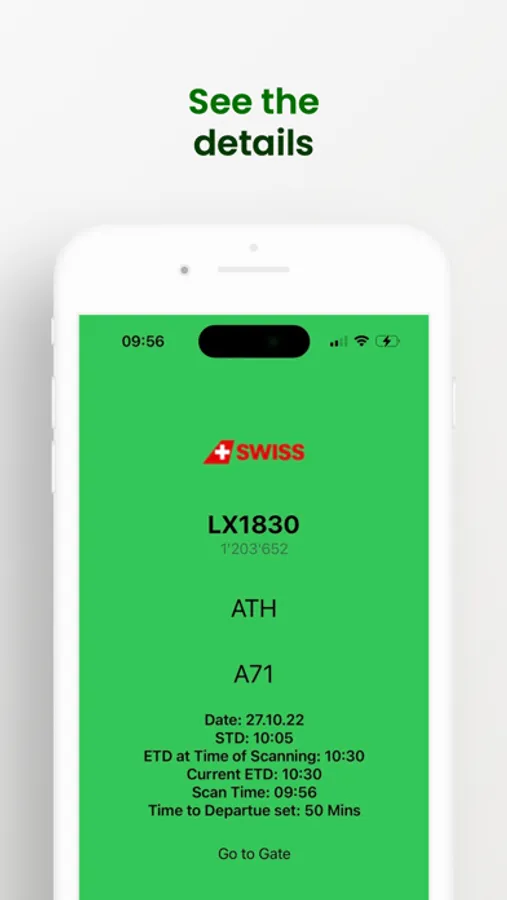 The app then determines whether the scanned boarding pass is a short connection (green), which must be prioritised, or whether the passenger can take the normal route (red).