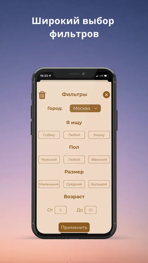 С помощью расширенных фильтров пользователь может выбрать наиболее подходящее животное, ознакомиться с фотографиями питомца и подробной информацией о нем.