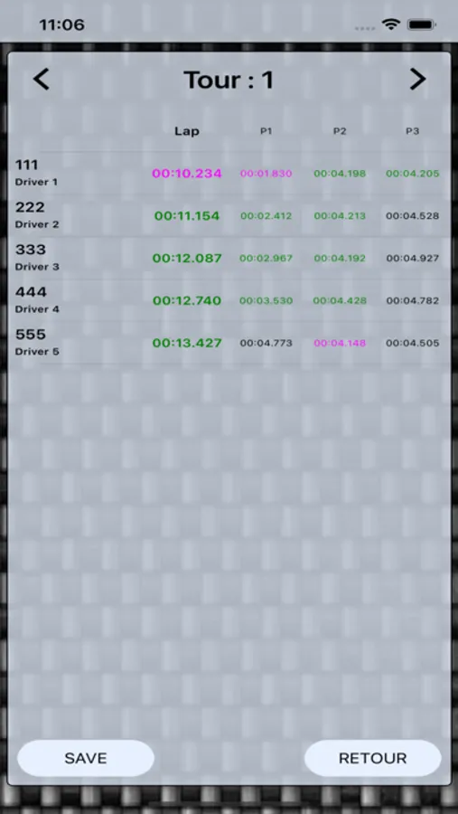 Chaque résultats peuvent être enregistré, séparément ou par course complète, vous pouvez les visualiser plus tard dans votre liste de session ou de courses que vous pouvez filtrer par nom de pilotes, circuit ou date.