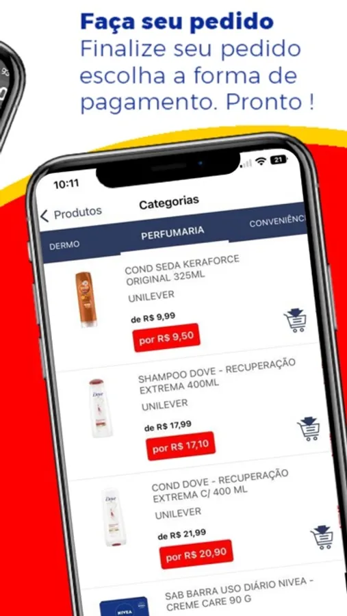 Você pode comprar seus itens de perfumaria, medicamentos genéricos e de referência, dermocosméticos, além de conveniência, com total conforto e comodidade.