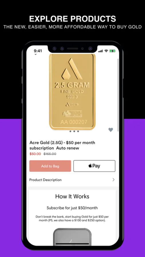 Pay 0, 00 or 50 per month, which will accumulate until your account reaches the price of your Acre Gold Bar. We'll ship you the Gold bar every time your account hits the price threshold (less our shipping and fulfillment fee) and credit any remainder to your next Gold bar. There's a one-time upfront membership fee of 2. Passive savings into a safe asset.