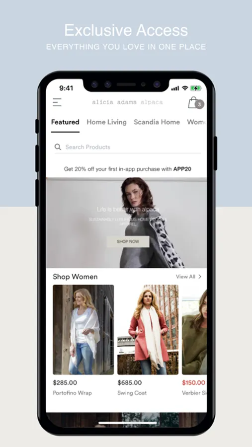 Download the Alicia Adams Alpaca app to access exclusive discounts, early access to collection launches. Everything you love, right at your fingertips.