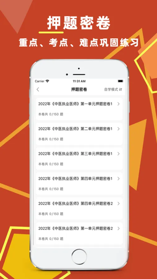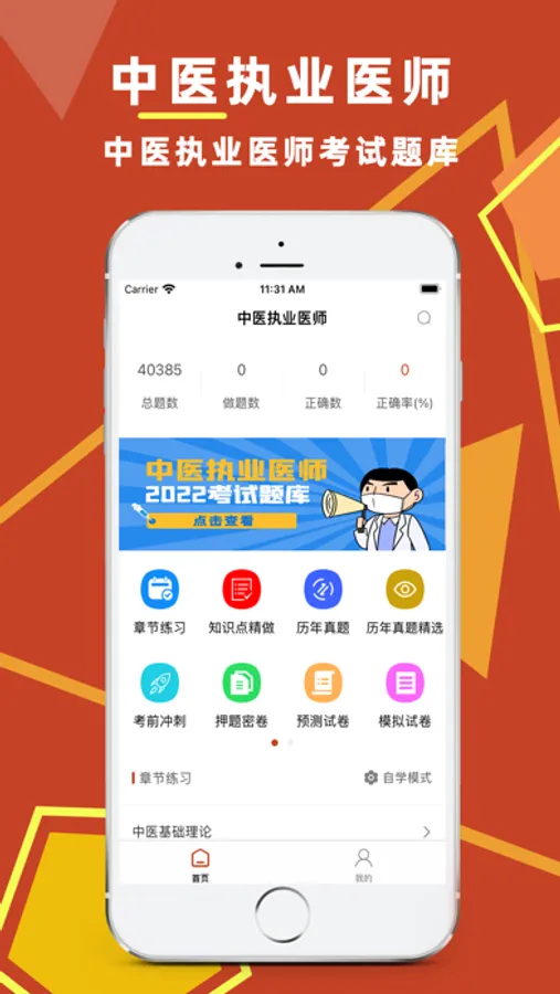 中医执业医师app一站式备考平台,含章节练习+高频考点+历年真题+通关密卷,根教材大纲,助你顺利通过考试。