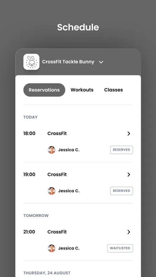 For members of CrossFit Tackle Bunny to reserve their place in a class, sign up for gym events, and general account management like updating headshots and credit card on file.