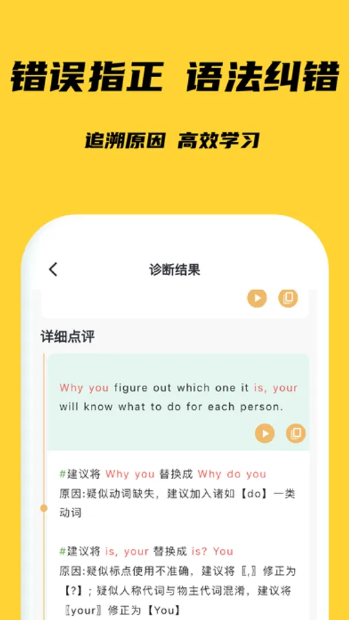 2、 学生群体:分析出作文写作过程中常见错误,快速提高写作能力。