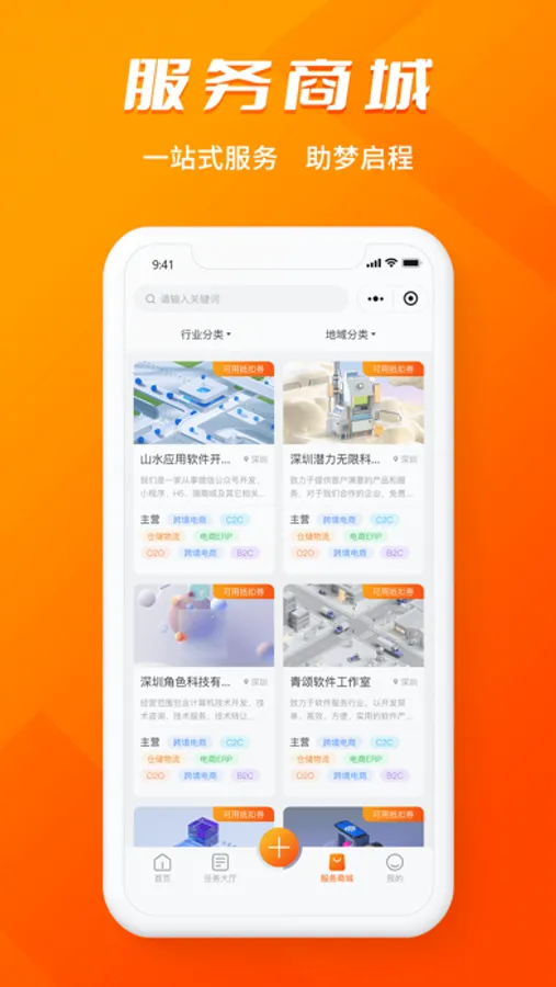服务商城:服务展示,方便用户找到各式服务,解决各种需求问题;