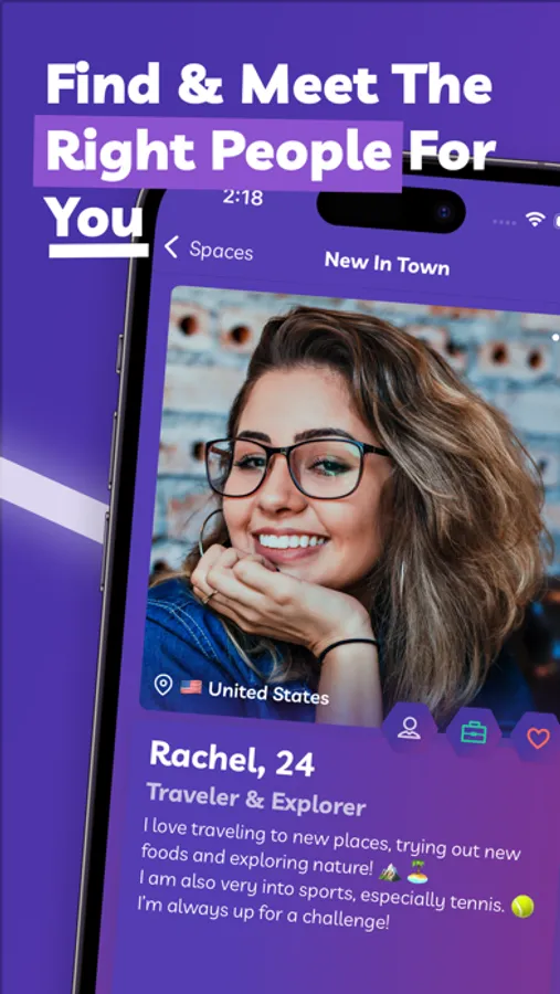 - Sports & Fitness: meet people who also practice or follow your favorite sport or team, a gym buddy for your workouts, or someone to join you when you go jogging!