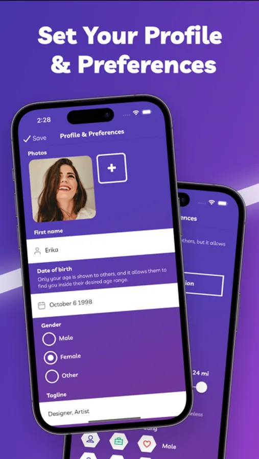 Set up a profile with your pictures and other information about yourself, then set your preferences for the people you want to meet.