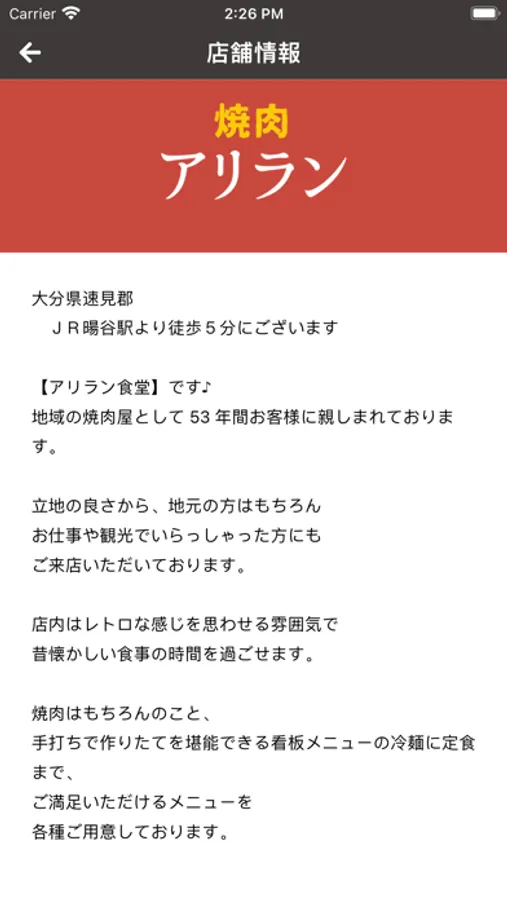 焼肉アリラン食堂のテイクアウト注文サービスをこのアプリでご利用いただけます。