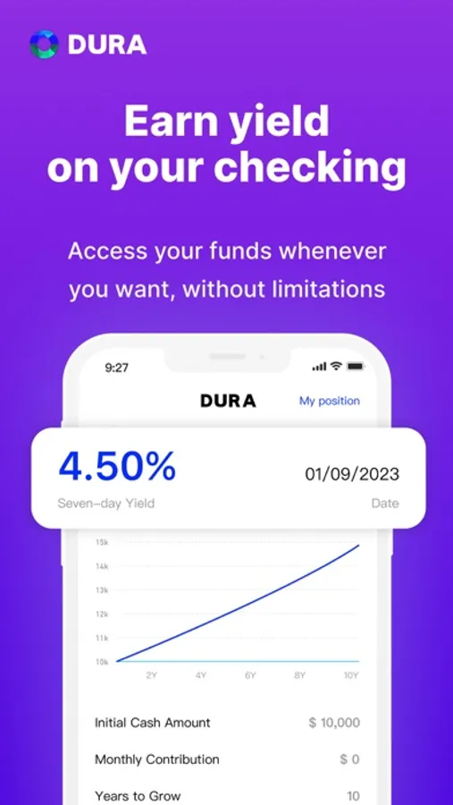 Once our app is live, all you'll need to do is deposit money into the Dura app, and we'll take care of the rest, allowing your money to grow at an annual yield of 4.5%. Can managing your money get any easier?