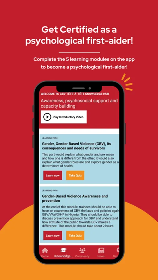 The GBV Tête-À-Tête mobile app provides free and non-judgemental psychosocial support for survivors of all forms of gender-based violence. It features a GBV service provider directory within the app to help case actors with case referrals as well as an in-app certification course for prospective psychological first-aiders.