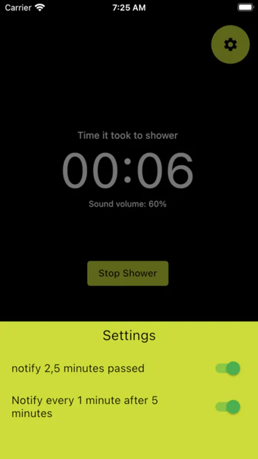 To goal of the app is to help you shower within 5 minutes and give insight on how long you actual spend under the shower, hoping to help you save on costs and water.