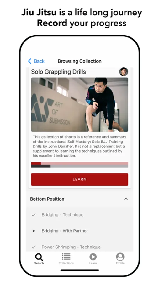 - Access to high-quality structured short-form videos to enable byte-sized, deep, learning on BJJ topics