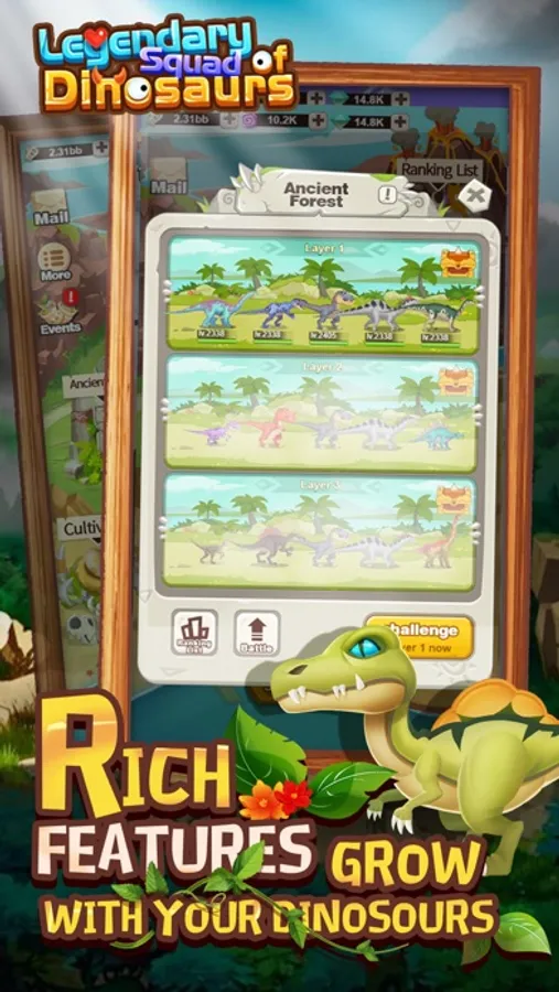 欢迎来到超神小队世界,在这里你将会遭遇到多种多样的古代恐龙,无论是侏罗纪蛮龙还是白垩纪霸王龙,你都能在这里找到他们的踪影。不断养成,不断进化,组建最强的恐龙小队。这是个弱肉强食的世界,你准备好了吗?